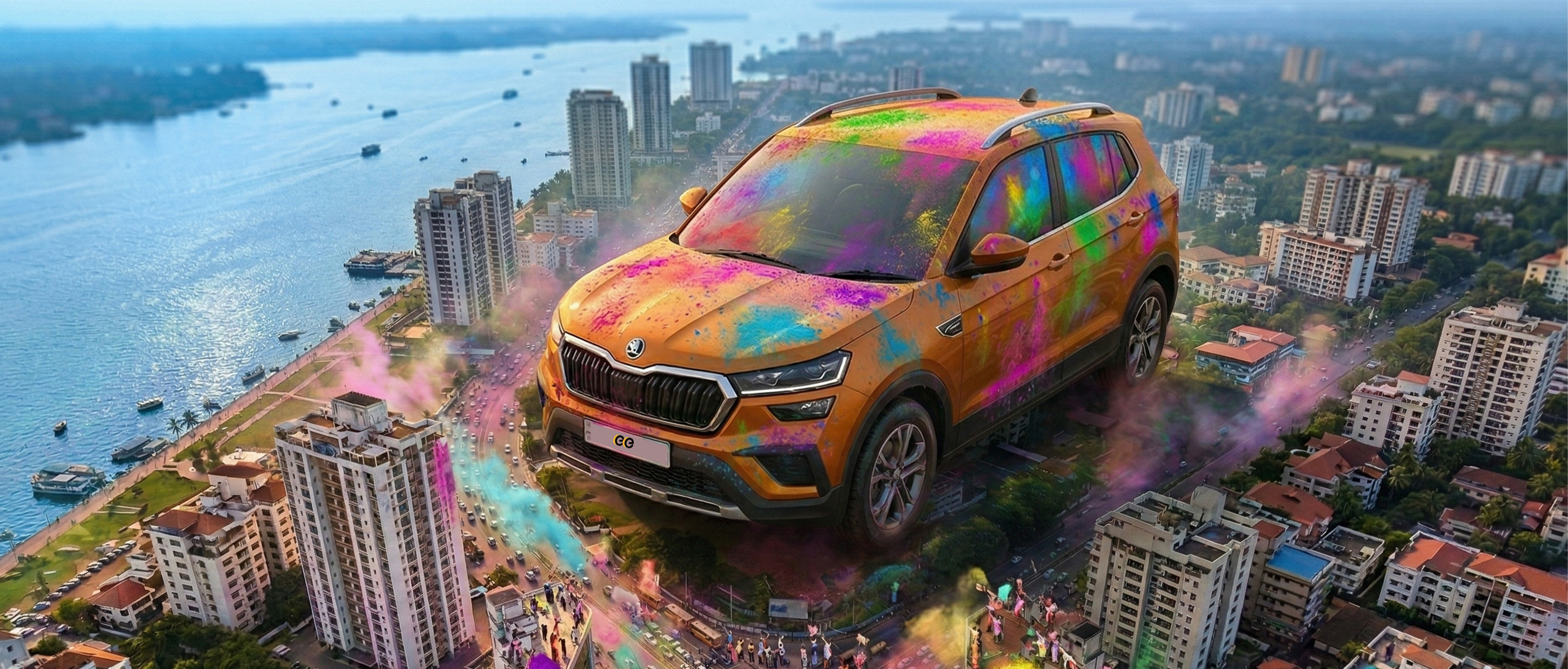 Red is the color of excitement — and Kochi wears it beautifully. The charming lanes of Fort Kochi, the glowing stretch of Marine Drive, the hum of music floating through the air — everything feels alive. Holi here is urban, vibrant, spontaneous. Drive through the city in a compact SUV or zip around on a scooter, and you’ll feel it — the pulse of celebration beating in every street corner. In Kochi, red is not just a color. It’s the rhythm of togetherness.