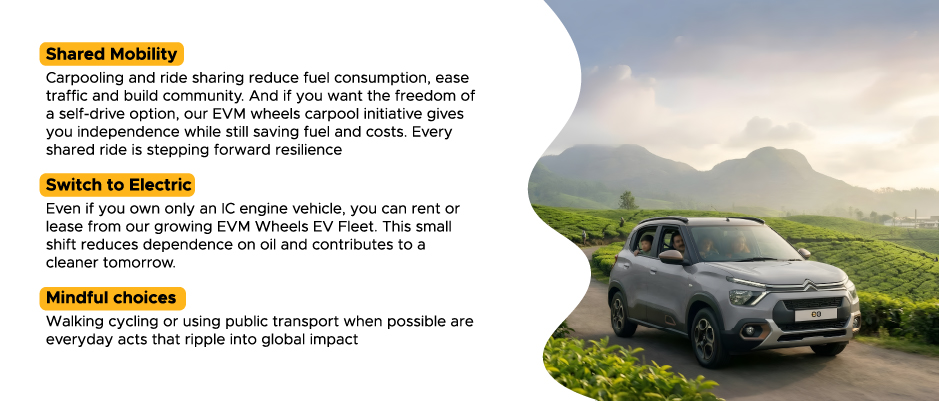 Oil Navigation is a global story, but its heartbeat is local. It touches the fisherman in Alappuzha, a student I n Kochi, the Kitchen of every house , the pilgrim in Malayatoor, and the tourist in Munnar. For us it is a reminder that mobility is not just about fuel- it is about people journeys and hope. This Easter , as the world reflects on renewal, EVM Wheels is adding 25 electric vehicles to our fleet and opening our Maradu E-Hub on April 2nd. With Shared mobility with freedom through EVM wheels carpool and the option to switch to electric we are creating pathways to resilience. Every ride shared, every EV chosen every mindful journey taken is a step forward freedom. At EVM wheels we affirm our purpose: to drive towards a future where wheels turn freely, powered by resilience, renewal and the joy of independence